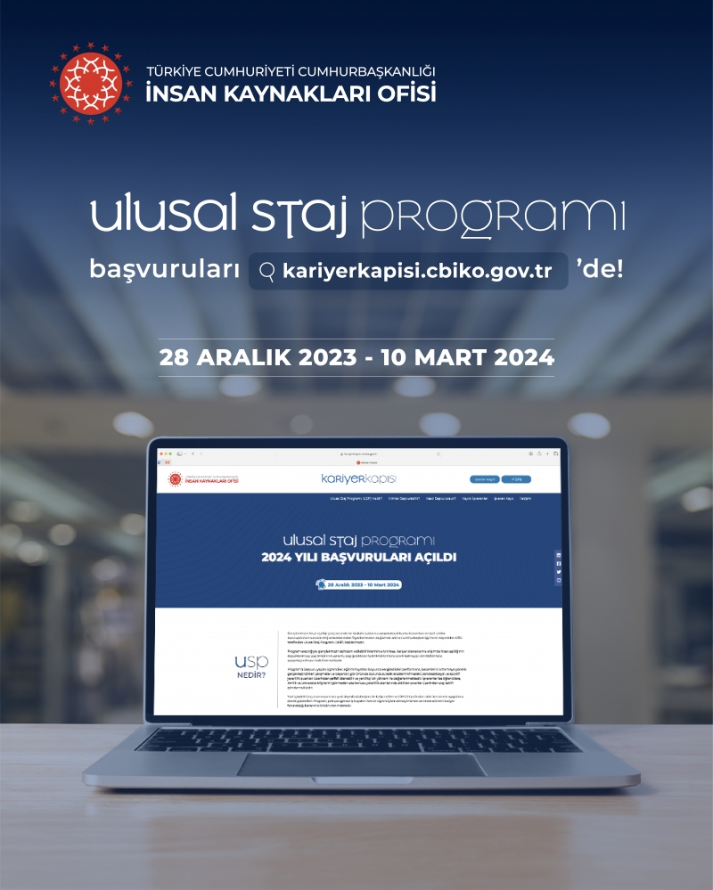 Yükseköğretim öğrencilerinin, yetenek yönetimi yaklaşımı ile istihdam edilebilirliklerini desteklemek amacıyla; fırsat eşitliği temelinde, liyakat ve yetkinlik esaslarına uygun olarak yürütülen Ulusal Staj Programı'nın başvuruları 28 Aralık 2023'te başlamış olup 10 Mart 2024 tarihinde sona erecektir.