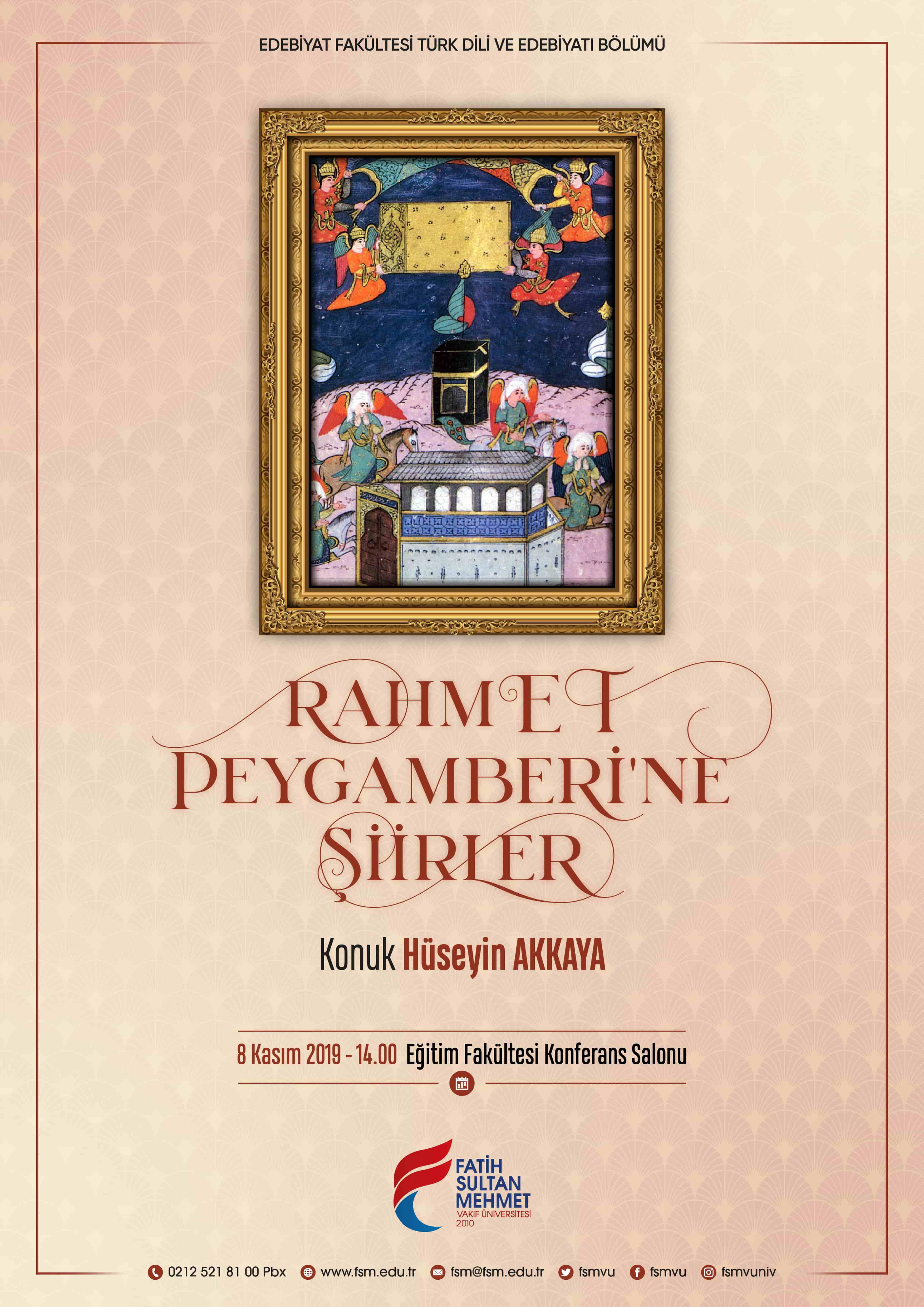 Türk Dili ve Edebiyatı Bölümü’nün düzenleyeceği “Rahmet Peygamberi’ne Şiirler” adlı konferans, Hüseyin Akkaya tarafından 8 Kasım’da Üsküdar Yerleşkesi konferans salonunda gerçekleştirilecektir.