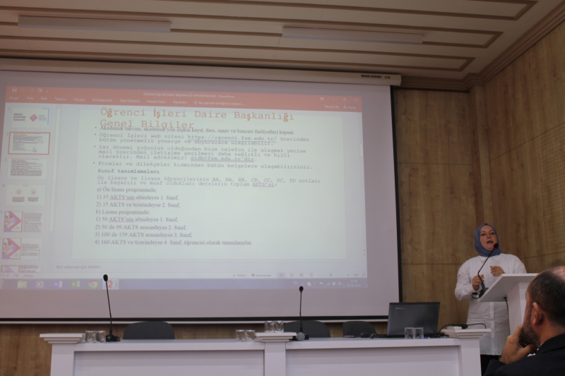 Program; Dekan Yardımcımız Dr. Öğr. Üyesi Ahmet USTA'nın açılış konuşması ile başlamıştır. Dr. Öğr. Üyesi Ahmet USTA, öğrencilerimize fakülte sekreterliği, bölüm başkanlıkları ve dekanlık ile ilgili öğrencilerimizin yürüteceği süreçler hakkında detaylı bilgi vermiştir.