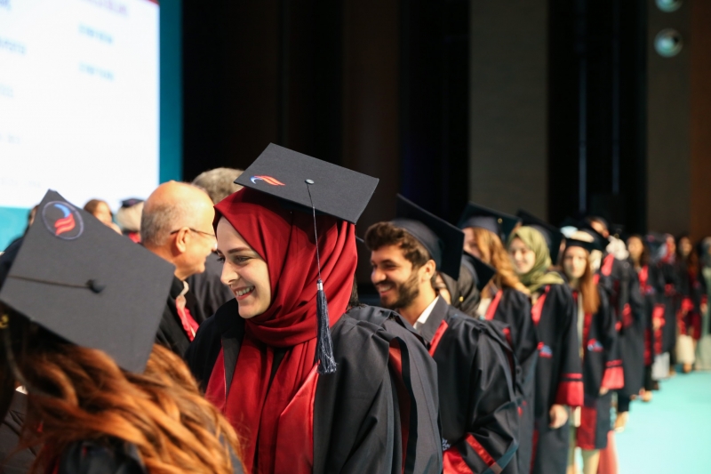 Lisans ve ön lisans bölümlerinden mezun 963 öğrencimiz Haliç Kongre Merkezi’nde düzenlenen görkemli bir törenle diplomalarını aldı. Lisans ve ön lisans eğitiminin verildiği 21 bölümün mezunları üniversite yaşamının en heyecanlı en coşkulu gününe aileleriyle birlikte katıldı.