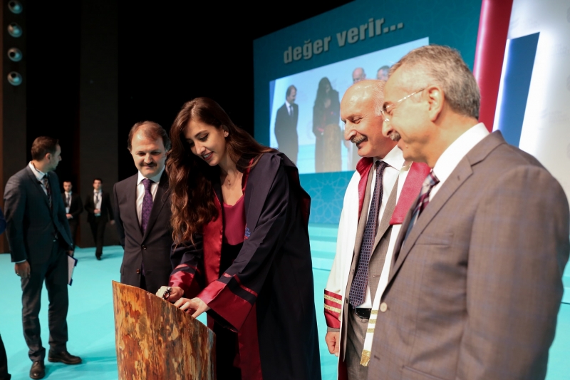 Açılış konuşmalarının ardından Vakıflar Genel Müdürü Ertem, Mütevelli Heyet Başkanı Gerçek ve Rektör Duman tarafından 2018 Üniversite birincisi Fatma Tülay Karaca’ya diploması ve ödülü takdim edildi, ardından birincimiz isminin yazılı olduğu levhayı şeref kütüğüne çakarak, üniversitenin ortak hafızasındaki yerini aldı.